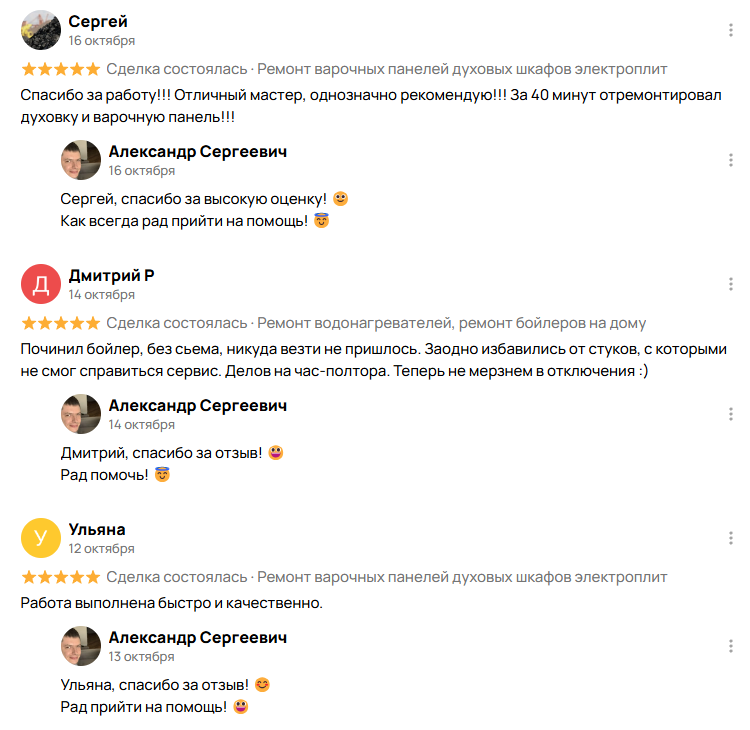 Люблю свою работу - поэтому делаю всё дотошно и аккуратно! А также очень не хочется приезжать повторно и переделывать то что плохо сделано. Лучше сделать один раз отлично и спать спокойно!